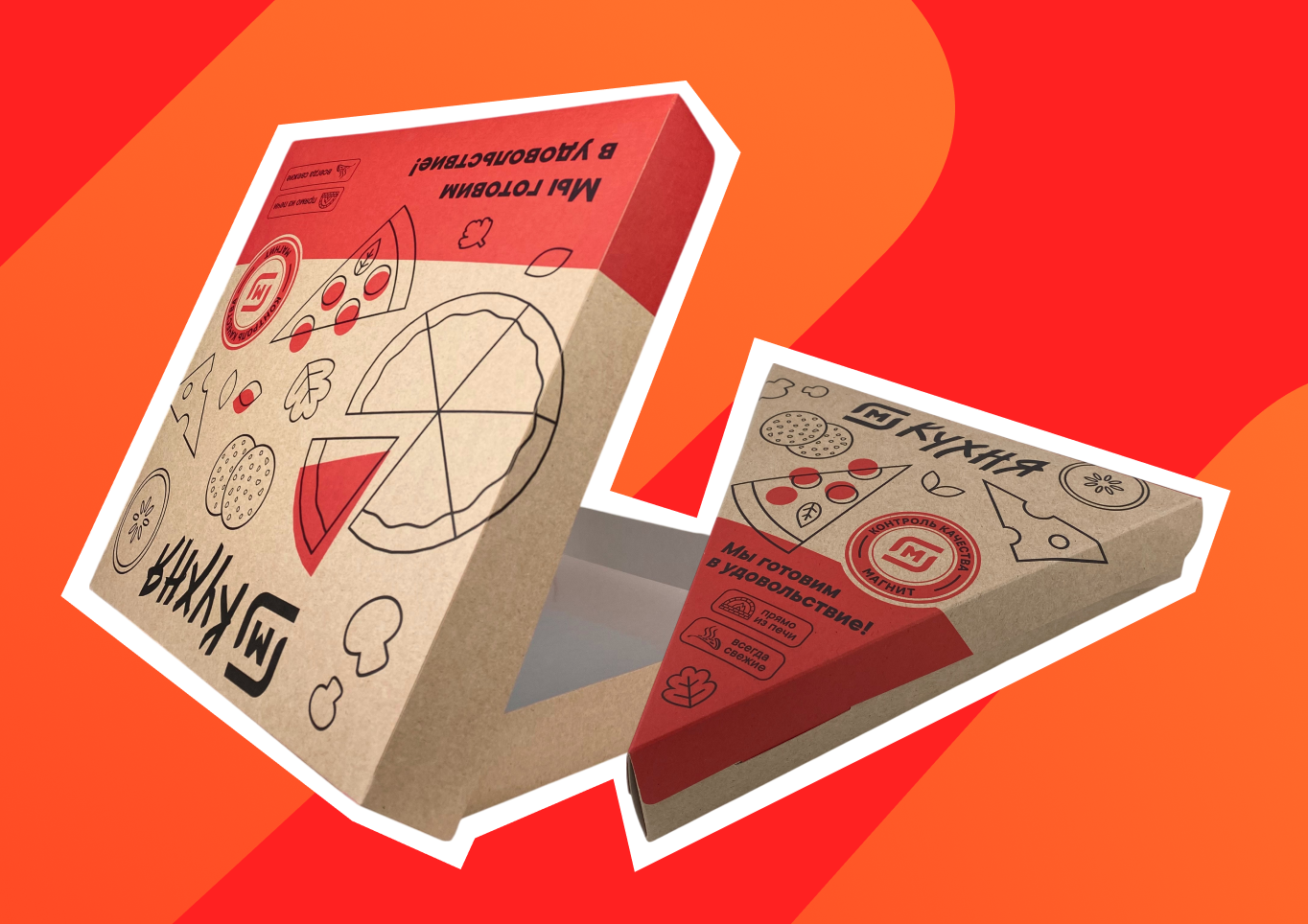 Кроме того, мы разработали уникальное решение для бренда — упаковку для подачи целой пиццы. Для её производства был выбран немелованный картон KomiFRESH плотностью 325 грамм, обеспечивающий повышенную прочность изделия. Применение флексопечати позволило добиться высококачественной цветопередачи дизайна, а БОПП-ламинация сделала изделие влаго- и жироустойчивым, существенно повысив его износостойкость.