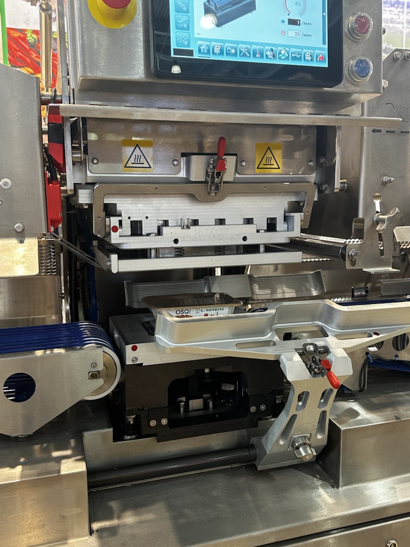Большой интерес у посетителей вызвала демонстрация автоматического запайщика с МГС производства G. Mondini. Прямо на глазах у участников, только что приготовленные шефом панини в упаковке OSQ Group, попадали в машину, а затем за считаные секунды проходили процесс запайки и попадали прямо с конвейера в руки. Гости смогли убедиться, что пленка действительно плотно прилегает к упаковке, несмотря на её необычную форму, а также легко открывается. Настоящая магия пищевого производства!