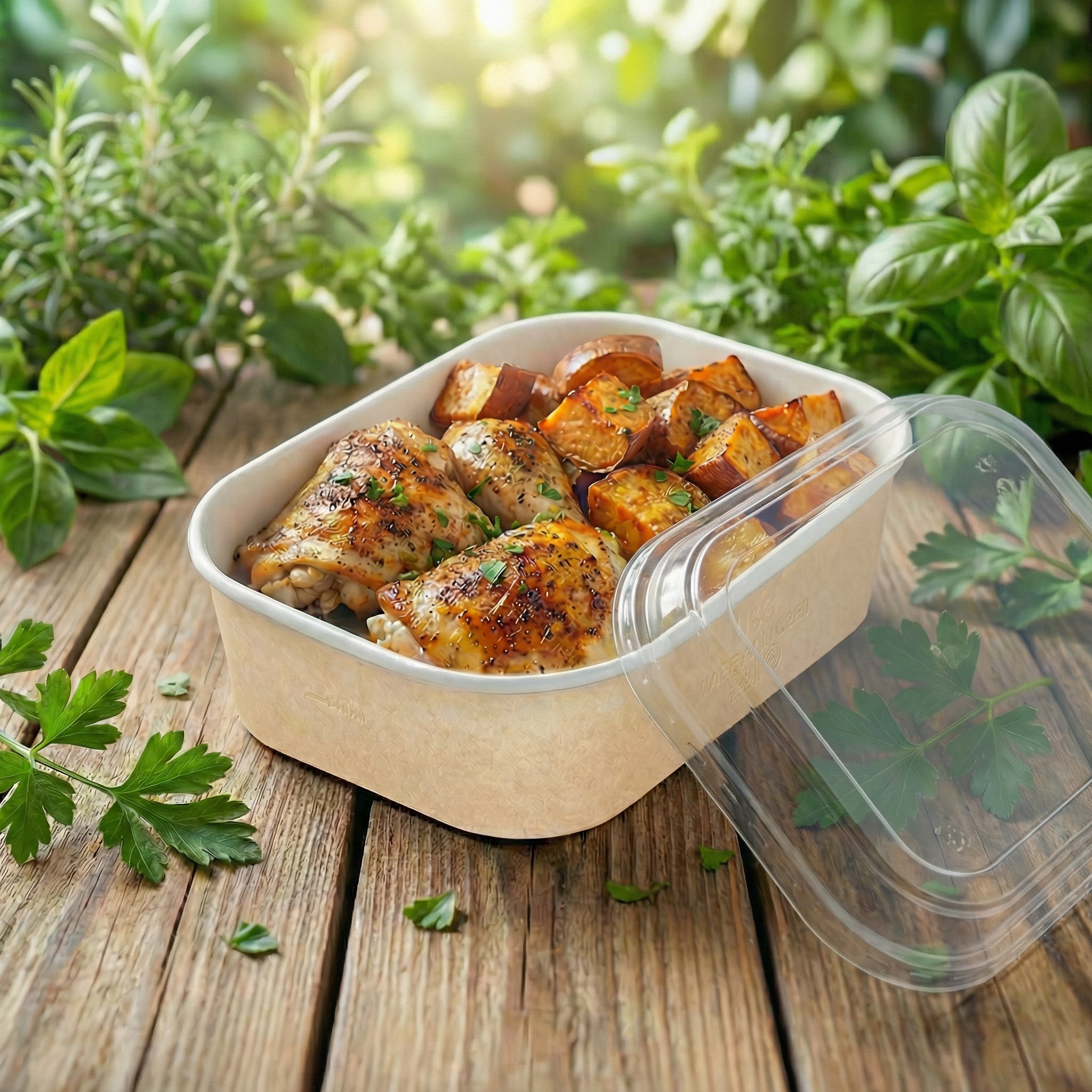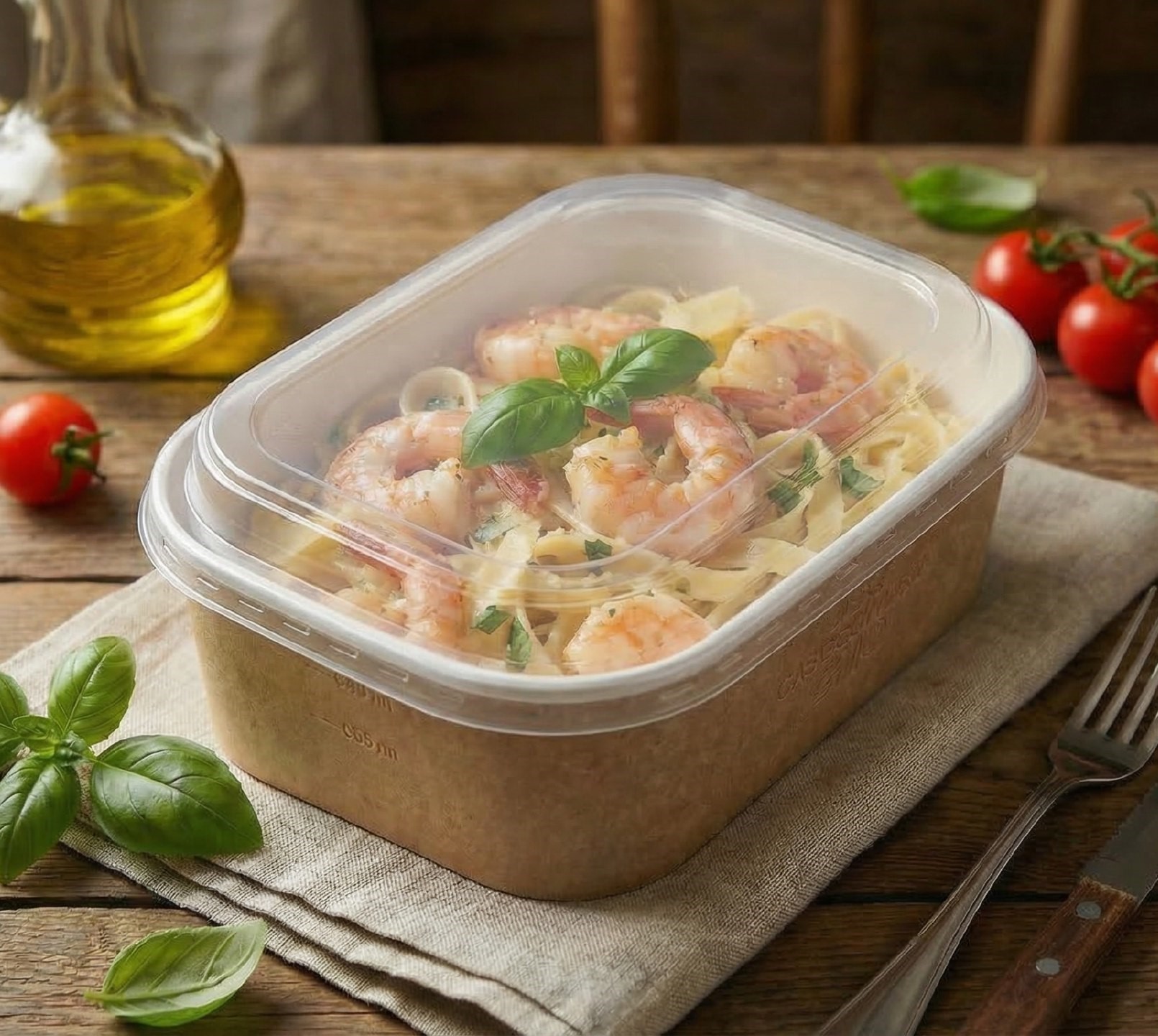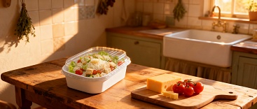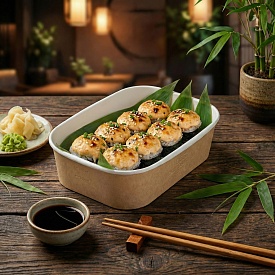 Универсальная конструкция из целлюлозного картона с барьерным покрытием подходит для самых разных форматов блюд: холодных, горячих, а также жирных и жидких продуктов.