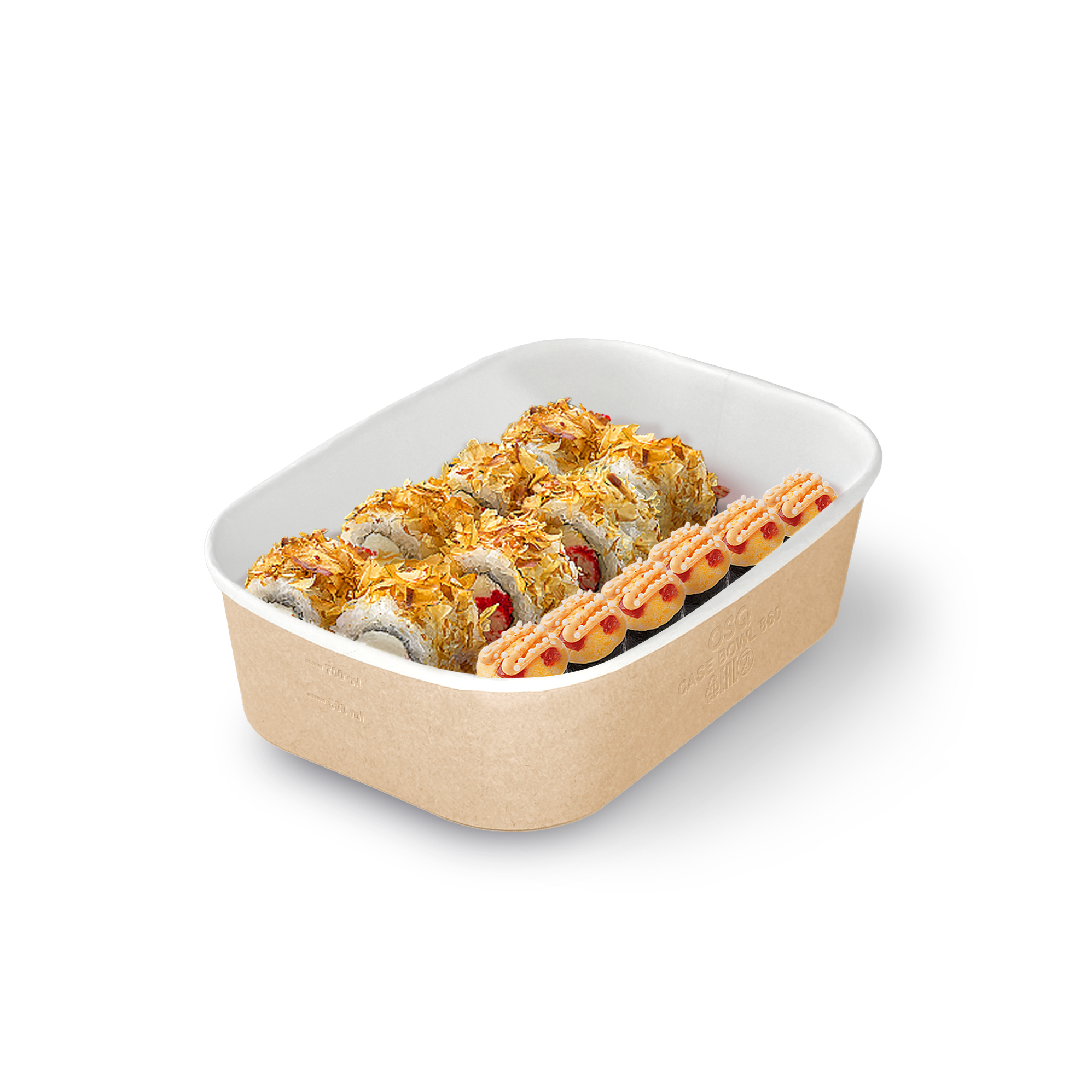 Универсальная конструкция из целлюлозного картона с барьерным покрытием подходит для самых разных форматов блюд: холодных, горячих, а также жирных и жидких продуктов.
