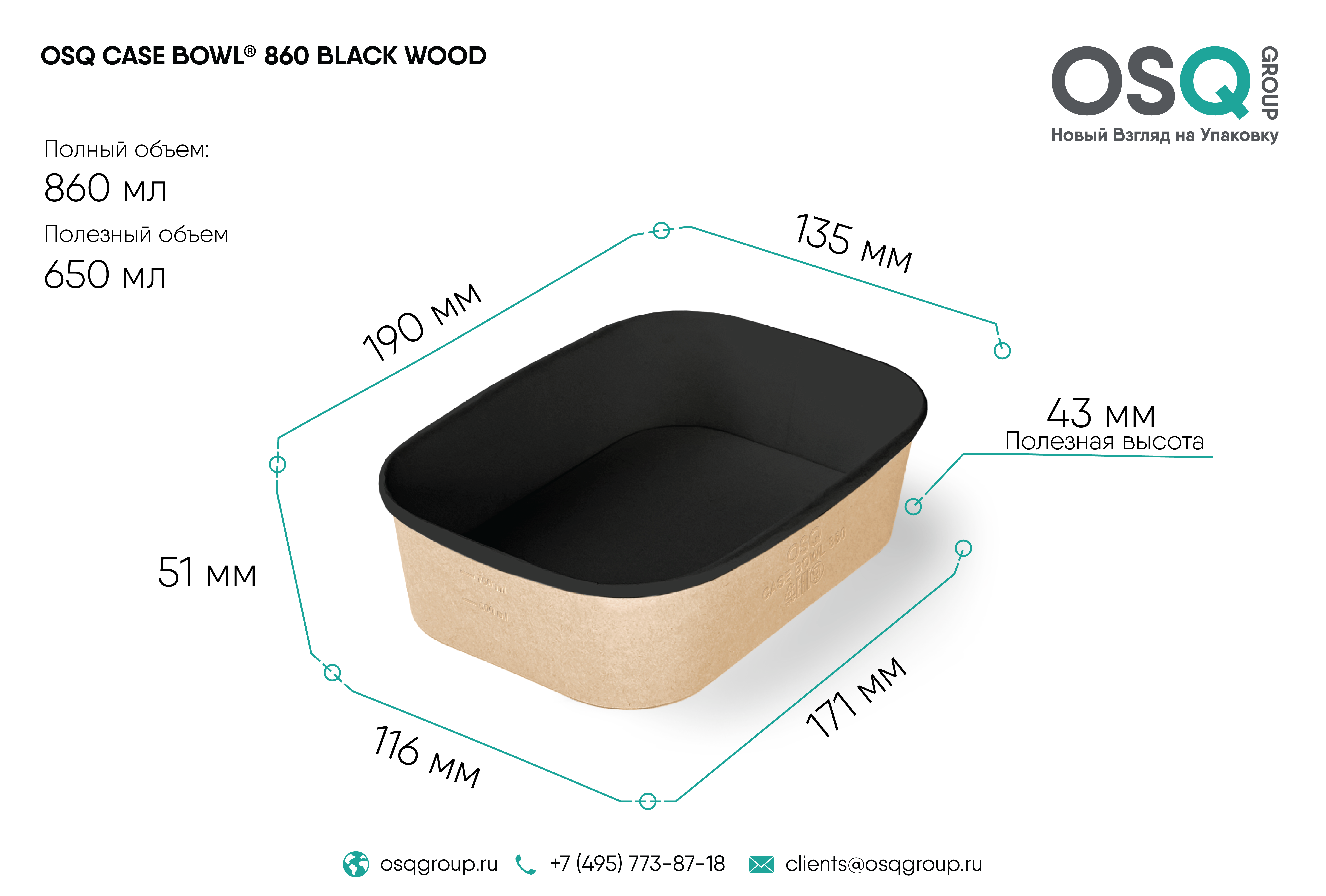 OSQ CASE BOWL 860 BLACK WOOD — развитие нашей легендарной линейки BOWL LINE. Инновационная форма, которой ещё никогда не было на российском рынке упаковки. Это новое стильное решение с внутренним матовым черным покрытием с добавлением пигмента черного угля.