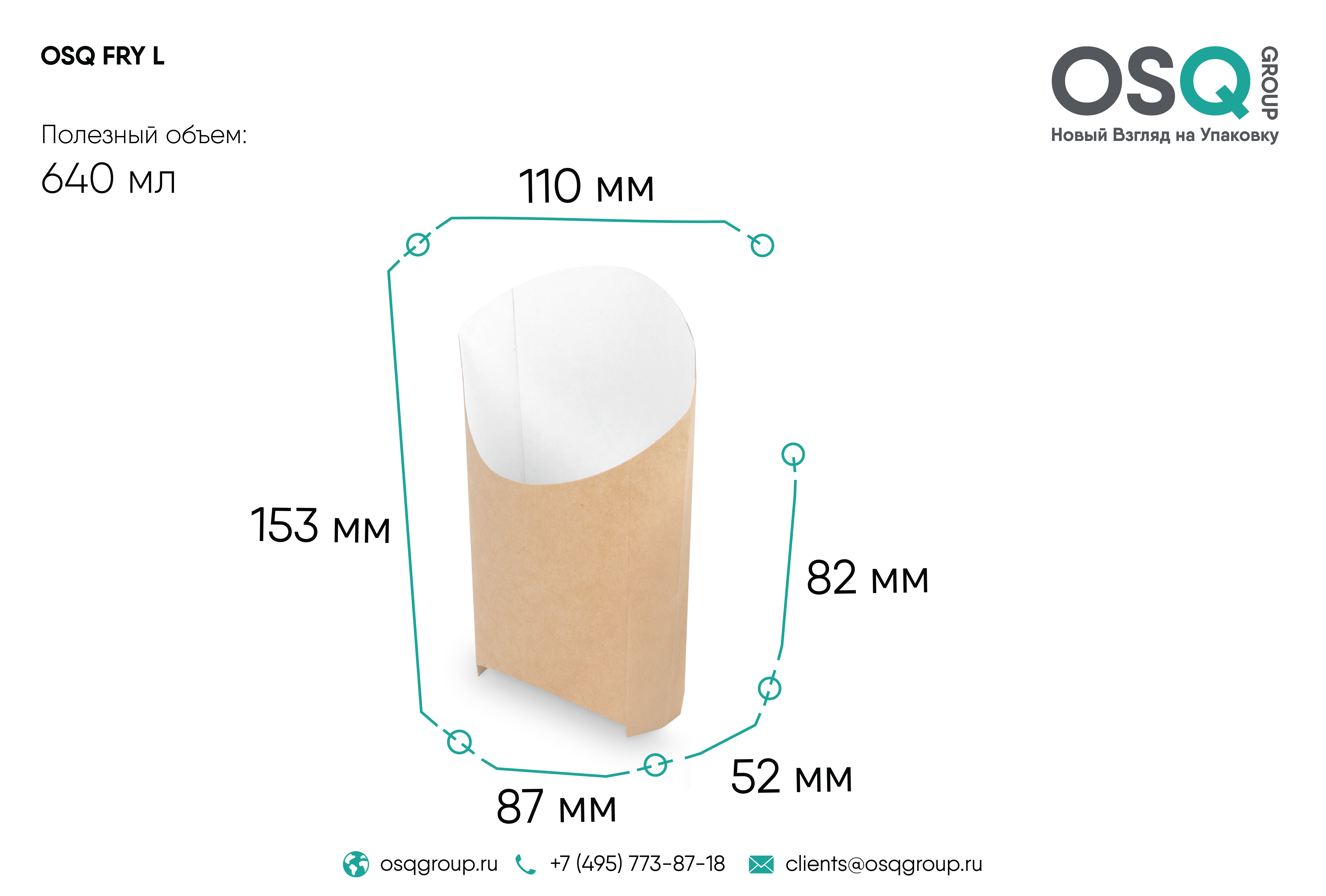Упаковка OSQ FRY M идеально подходит для картошки по-деревенски и фри используются экологически чистые биоразлагаемые материалы. Отличный выбор для фастфуда и ресторанов навынос.