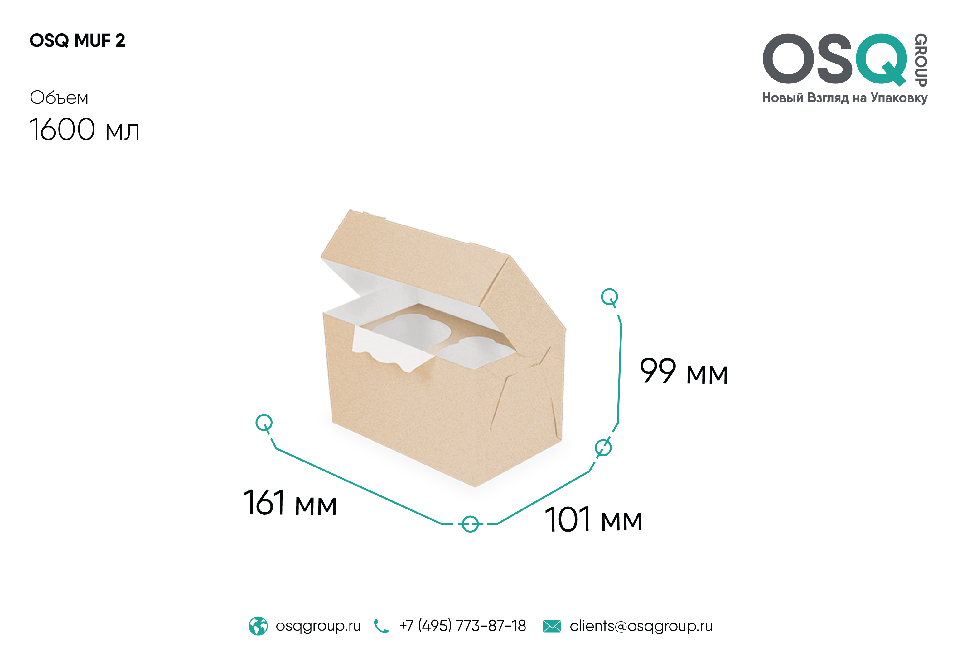 Упаковка для маффинов OSQ MUF 2 из линейки Bakery line — идеальное решение для кондитерских производств, take away.