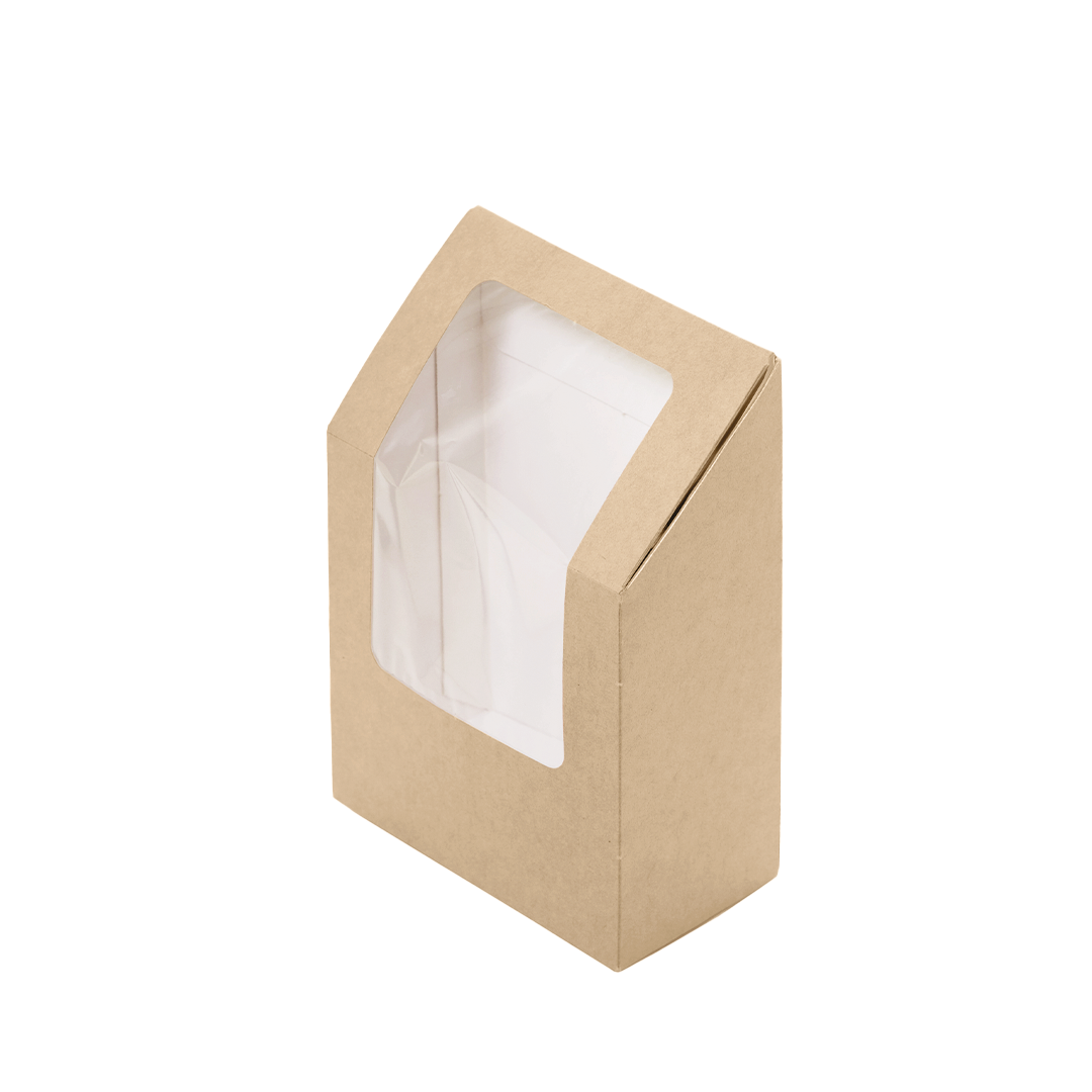Крафт-упаковка с панорамным окном выгодно презентует даже самый простой сэндвич и выгодно выделит ваш продукт среди конкурентов. Упаковка представлена в нескольких размерах и формах для сэндвичей, багетов, роллов. Она максимально проста в использовании: открыл — вложил — закрыл — продал.