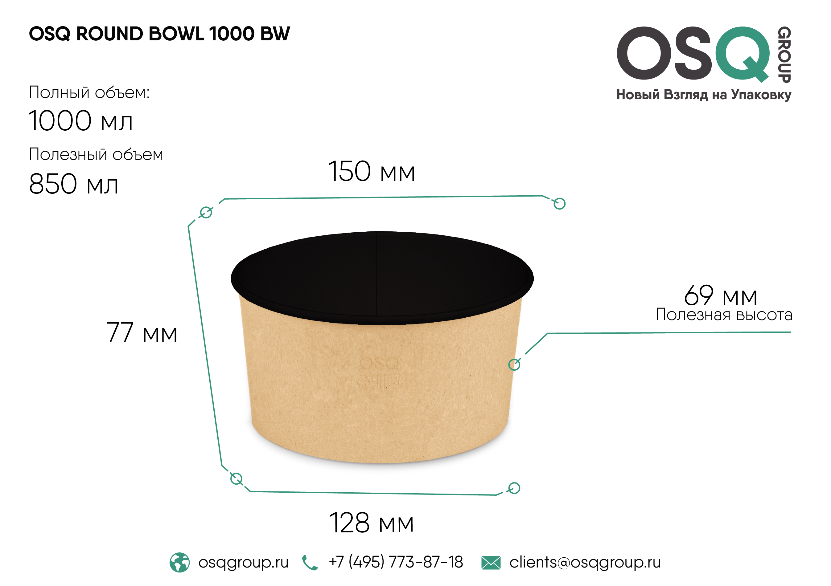 - Артикул OSQ ROUND BOWL 750/1000 KRAFT LID.