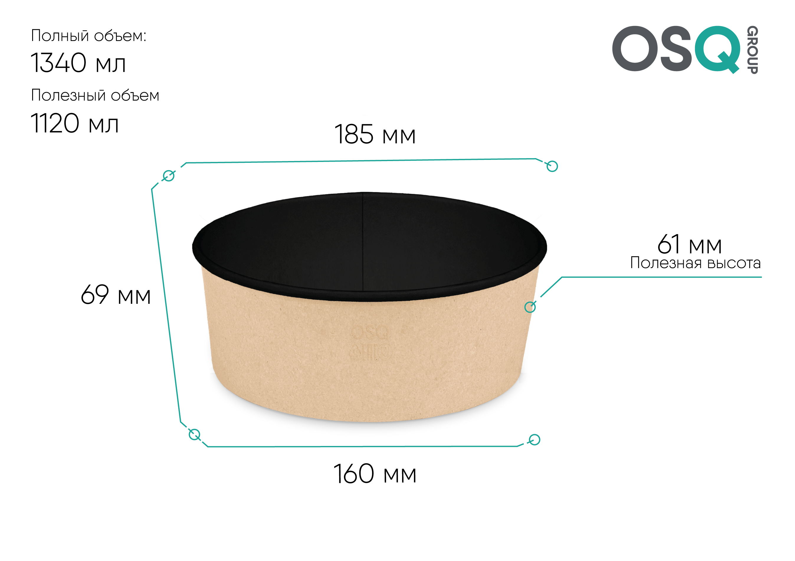 Круглый контейнер OSQ Round Bowl 1300 из линейки Round Line — идеальное решение для ресторанов, кафе, кейтеринга и ресторанов быстрого питания и доставки.