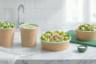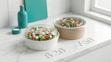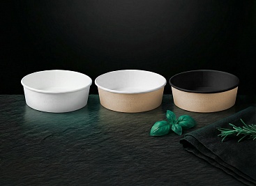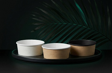 Самая стильная и современная упаковка круглой формы — это Bowl line. Благодаря высоким бортам в упаковке из этой коллекции можно хранить жирные и жидкие блюда, а также мороженое и любые другие продукты — она выдержит все: плотный картон и качественная ламинация надежно защищают от протекания.
