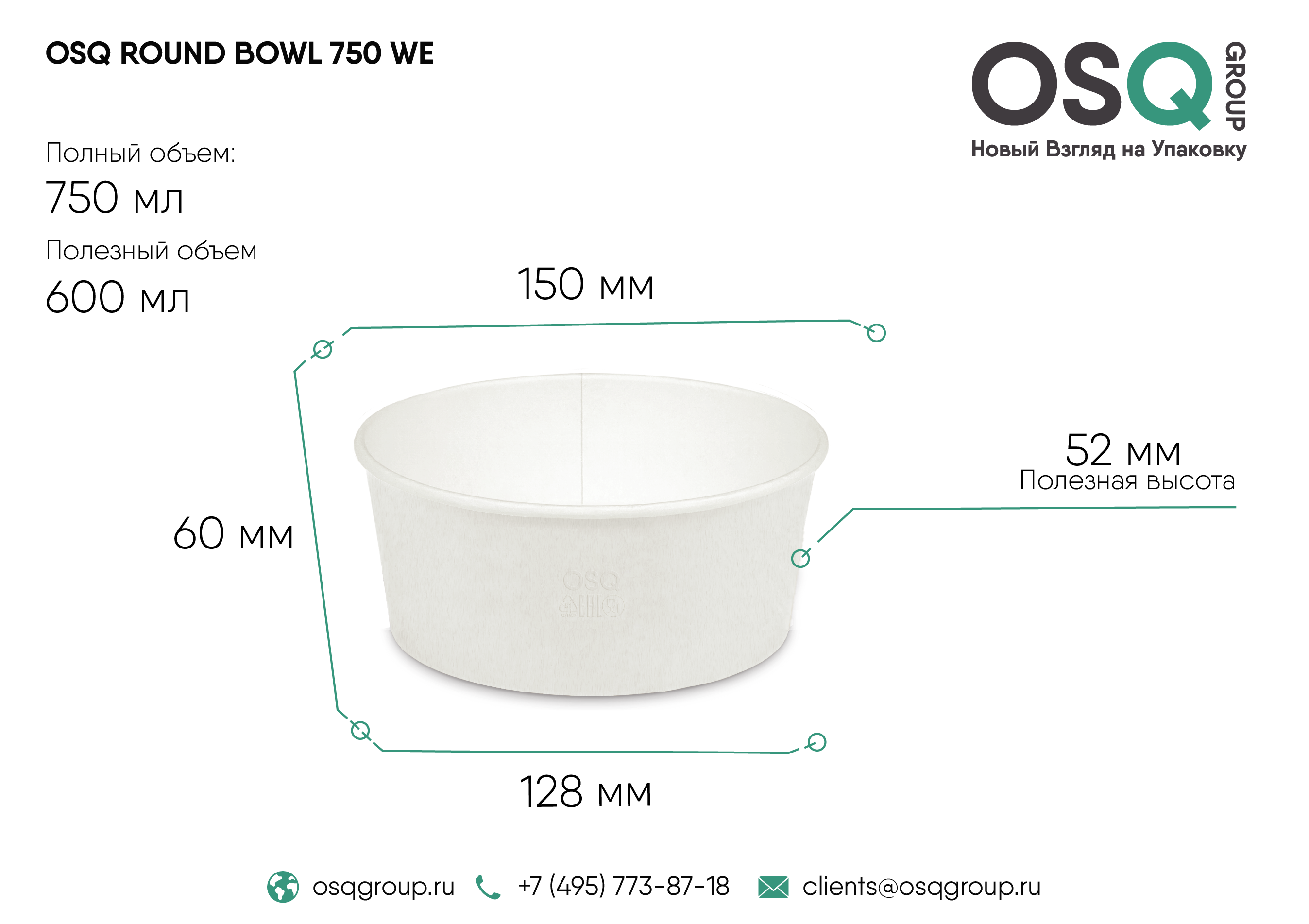 - Артикул OSQ ROUND BOWL 750 Белый