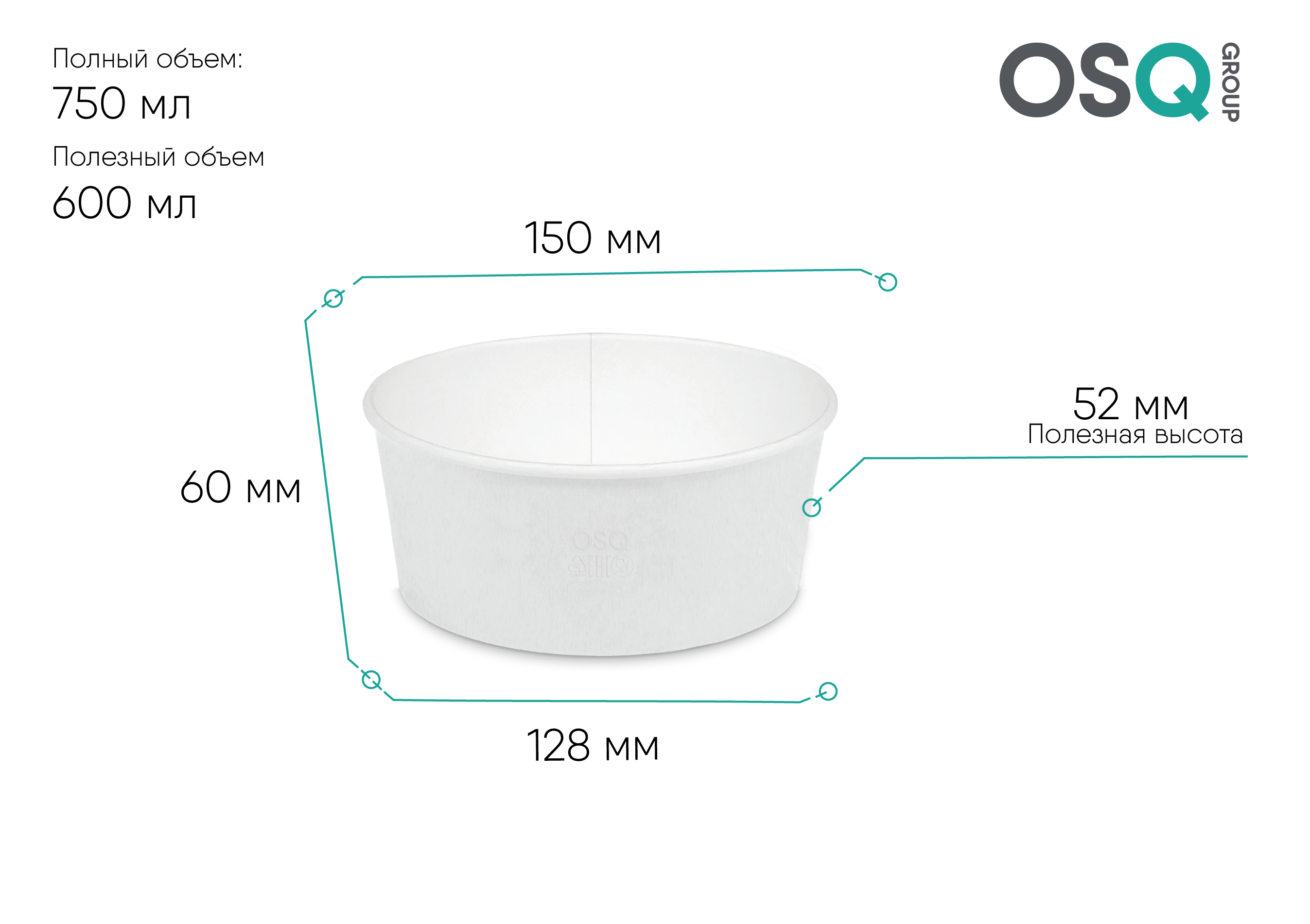 Круглый контейнер OSQ Round Bowl 750 White из линейки Round Line — идеальное решение для ресторанов, кафе, кейтеринга и ресторанов быстрого питания и доставки.