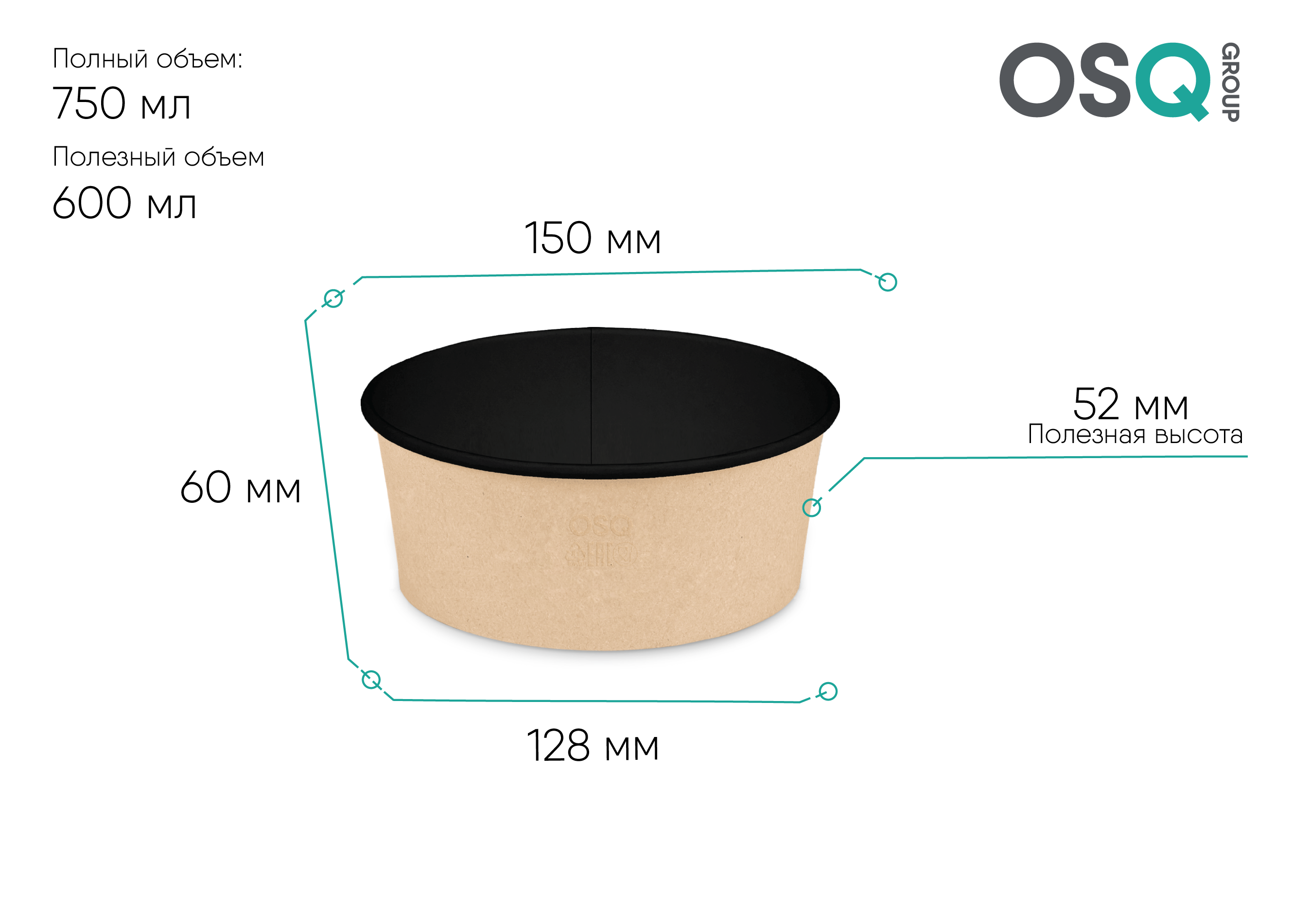 Круглый контейнер OSQ Round Bowl Black Wood 750 это новое стильное решение с внутренним матовым черным покрытием с добавлением пигмента черного угля. Идеальное решение для ресторанов, кафе, кейтеринга, сегмента готовой еды и ресторанов быстрого питания.