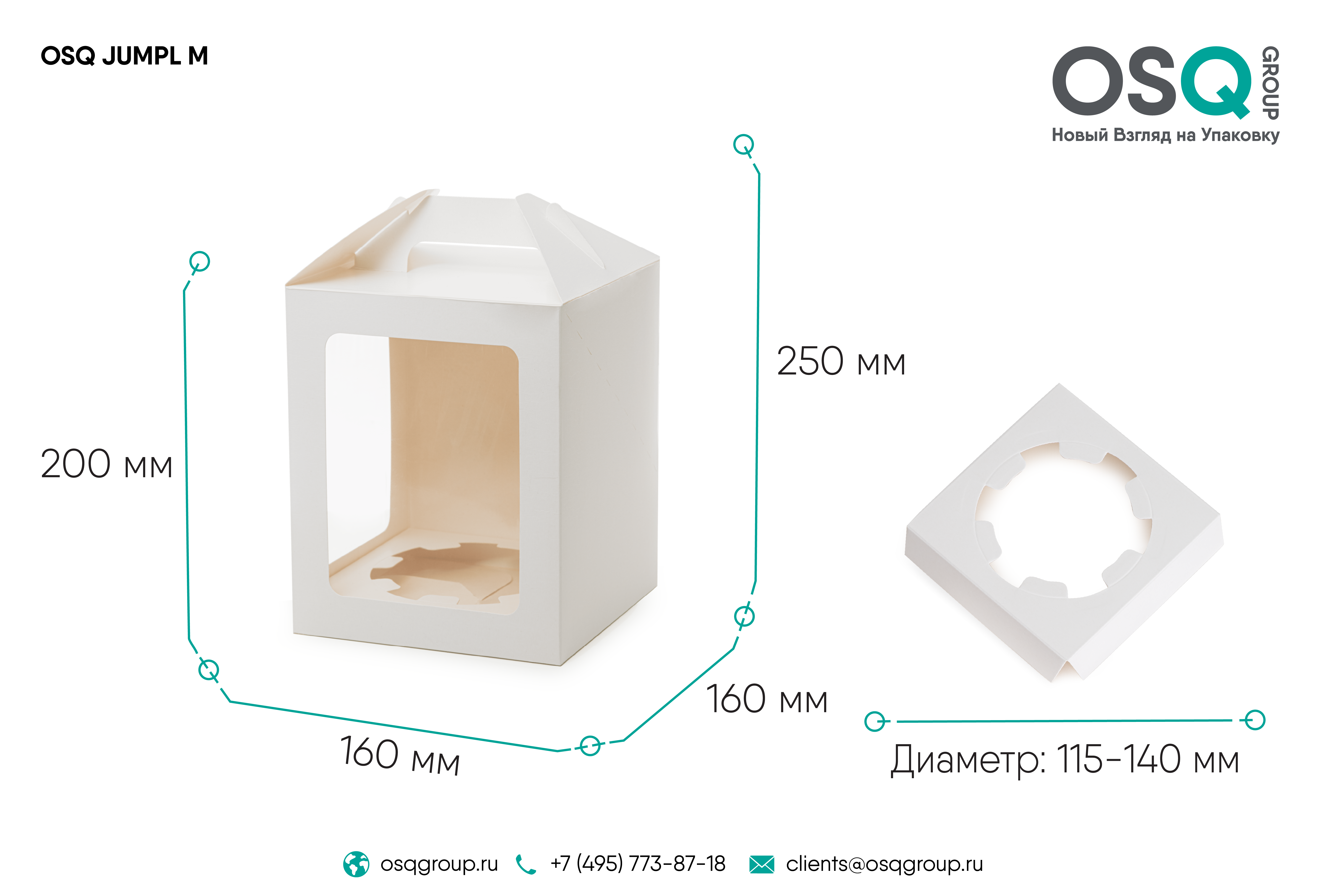 За счет внутреннего ложемента, десерт прочно крепится внутри, что обеспечивает устойчивость и сохранность кулича и другой подходящей выпечки внутри короба. Диаметр ложементов идеально подходит под самые популярные размеры куличей.