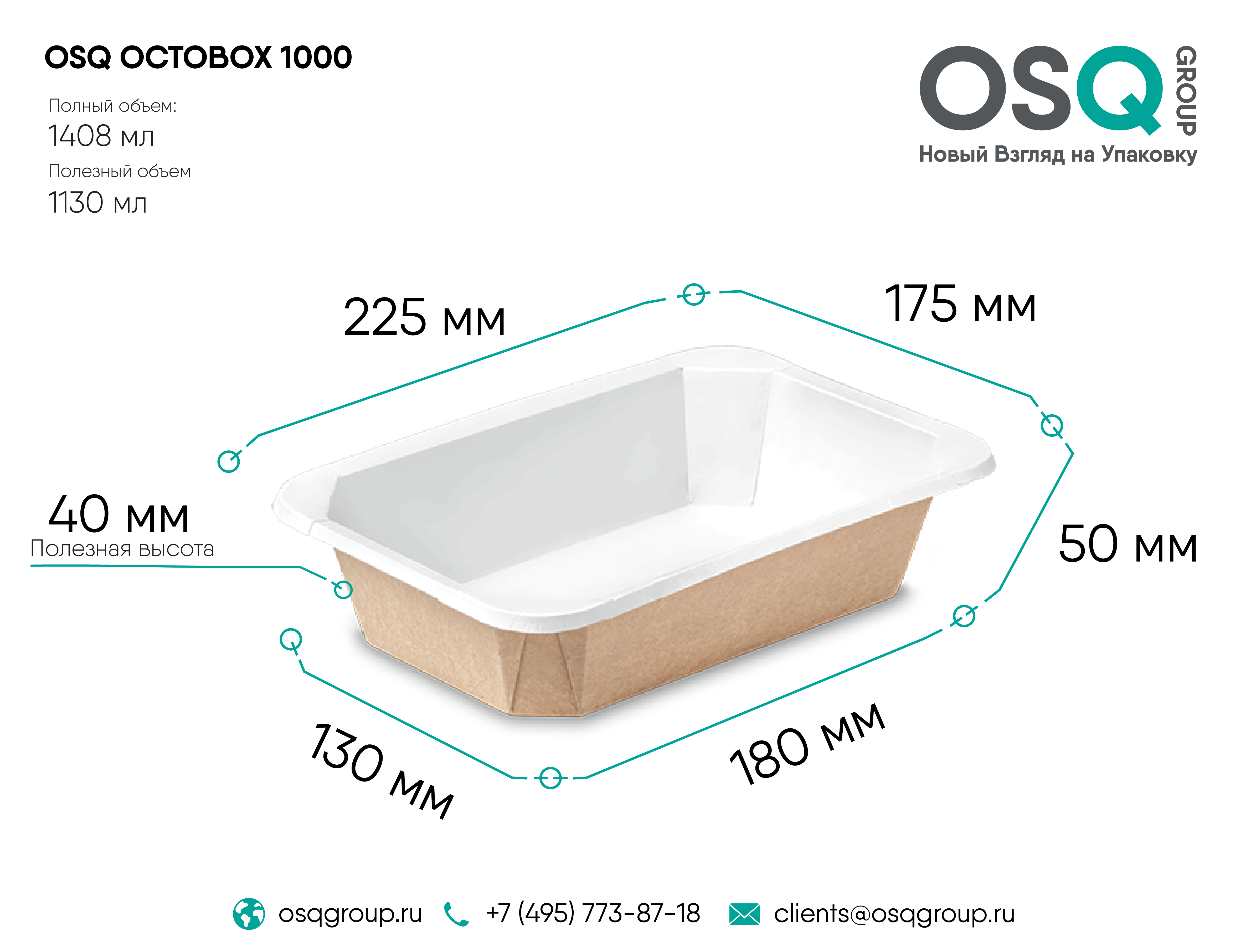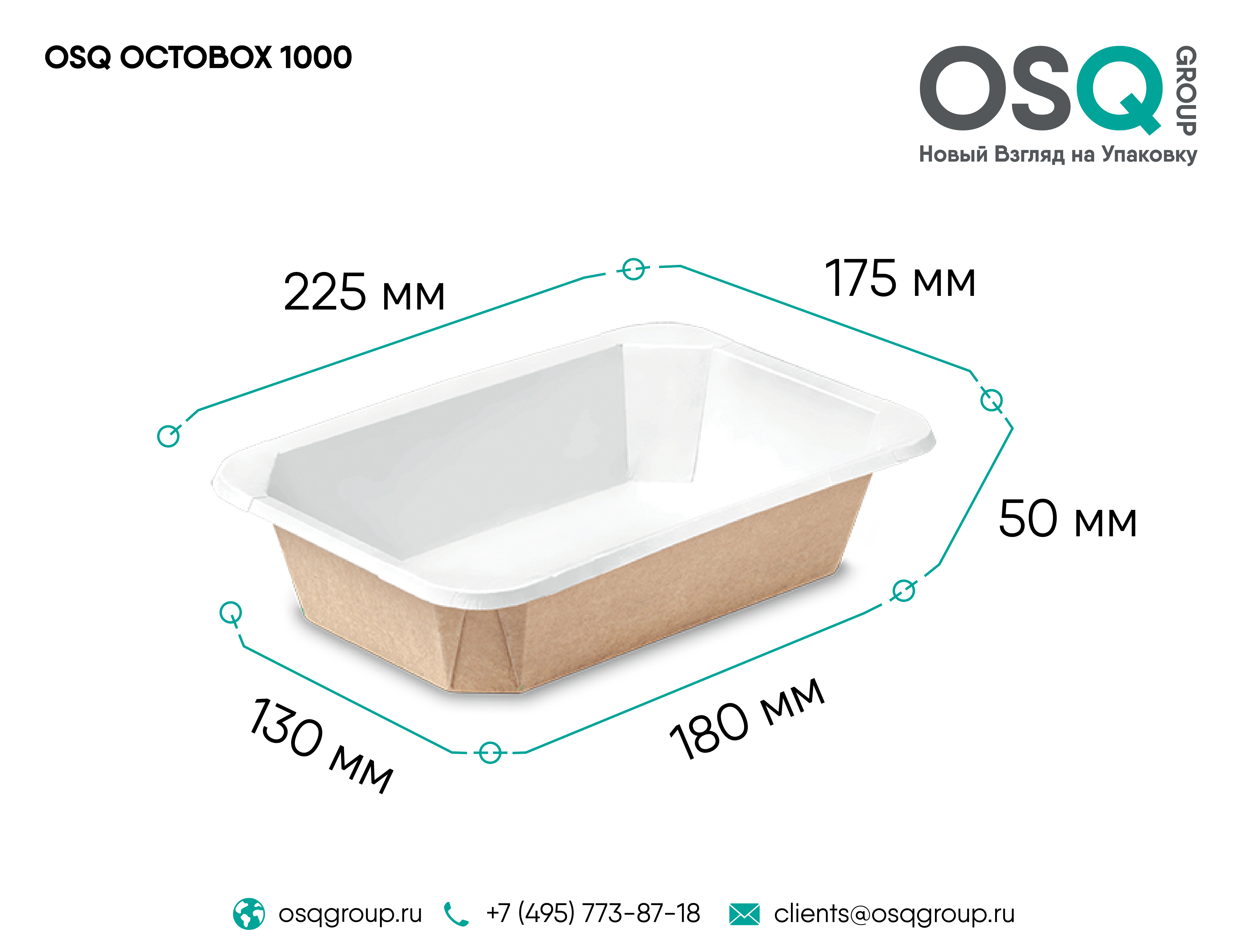 OSQ OCTOBOX 1000 – это универсальные пищевые контейнеры из целлюлозного крафт-белого картона с внутренним барьерным покрытием.